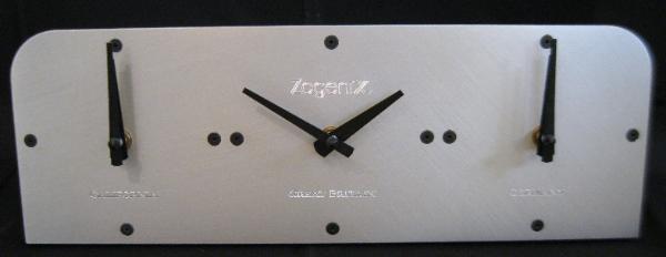 | Custom Fabricated & Designed Aluminum Desk Clock (with 3 time zones) For Zogenix Employees |